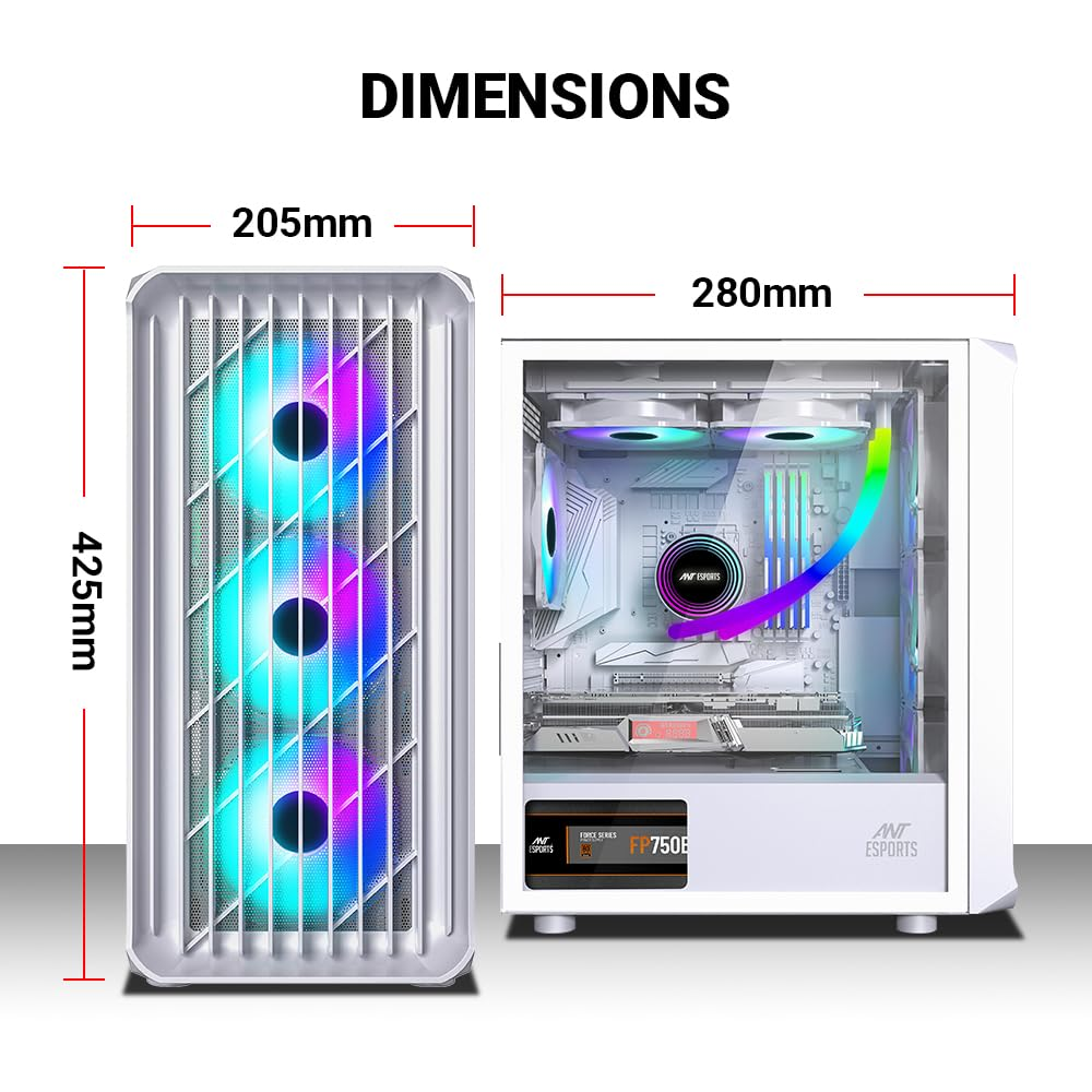 Ant Esports 205 Mini 6F Mini-Tower Computer Case/Gaming Cabinet - White | Support Micro-ATX, Mini-ITX | Pre-Installed 6 ARGB Fans