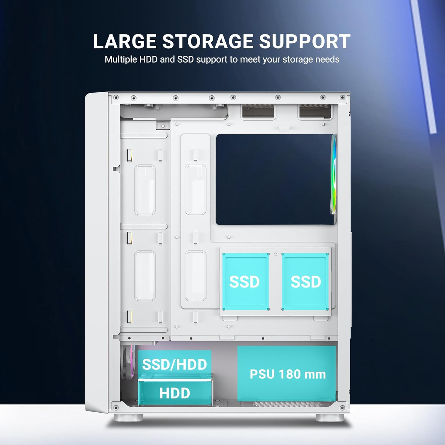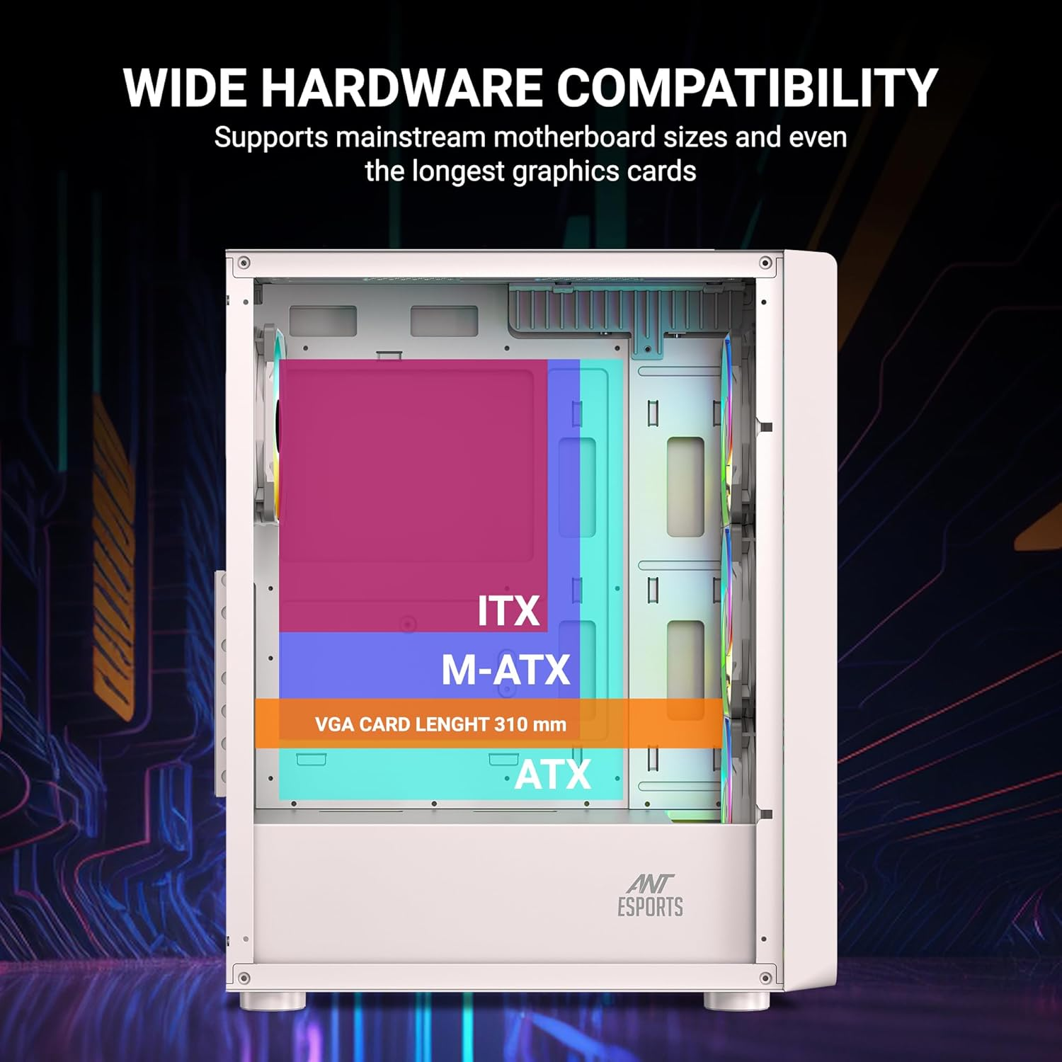 Ant Esports 211 Air Mid-Tower Computer Case I Gaming Cabinet - White | Support ATX, M-ATX, ITX | Pre-Installed 3 x 120mm ARGB Front Fan & 1 x 120mm ARGB Rear Fan