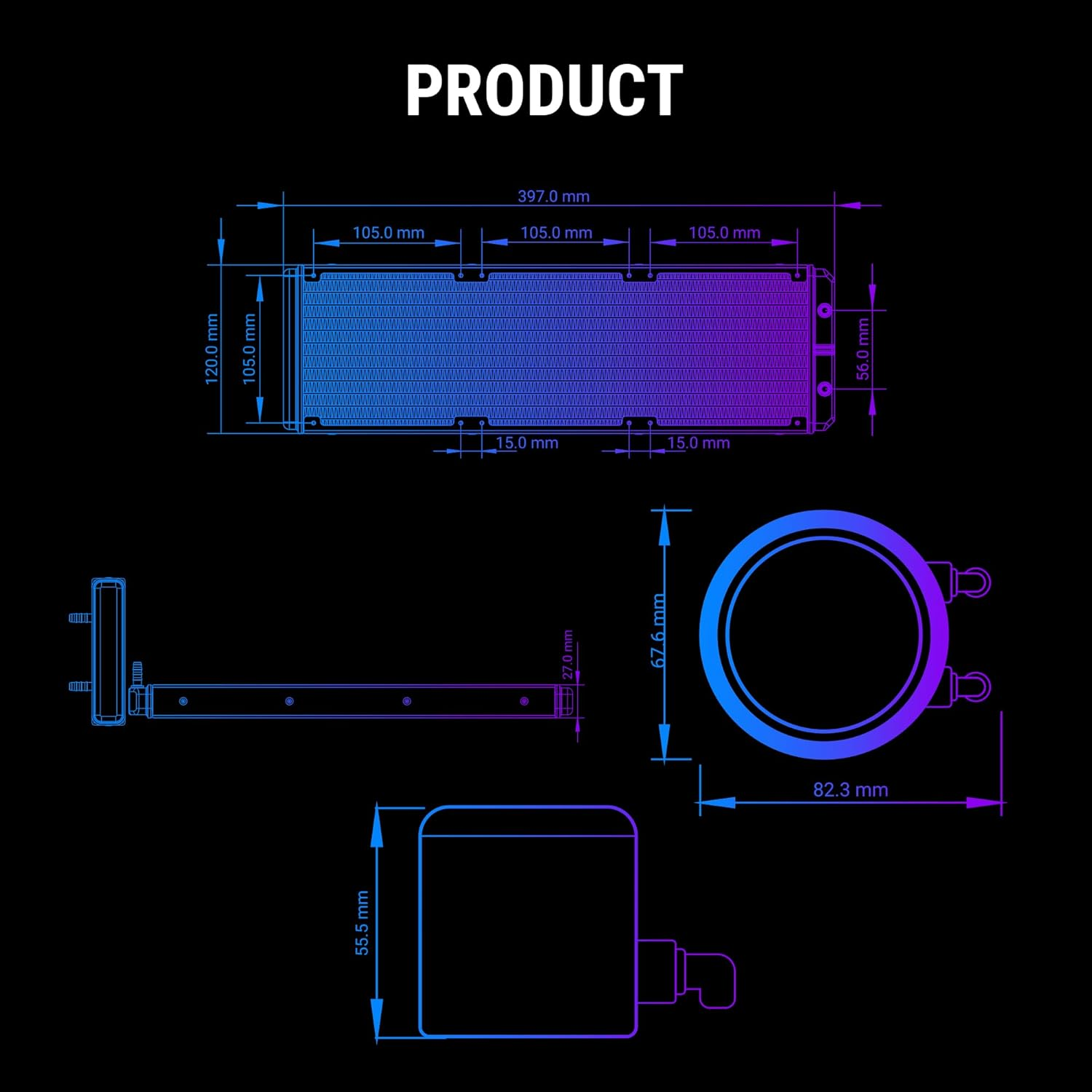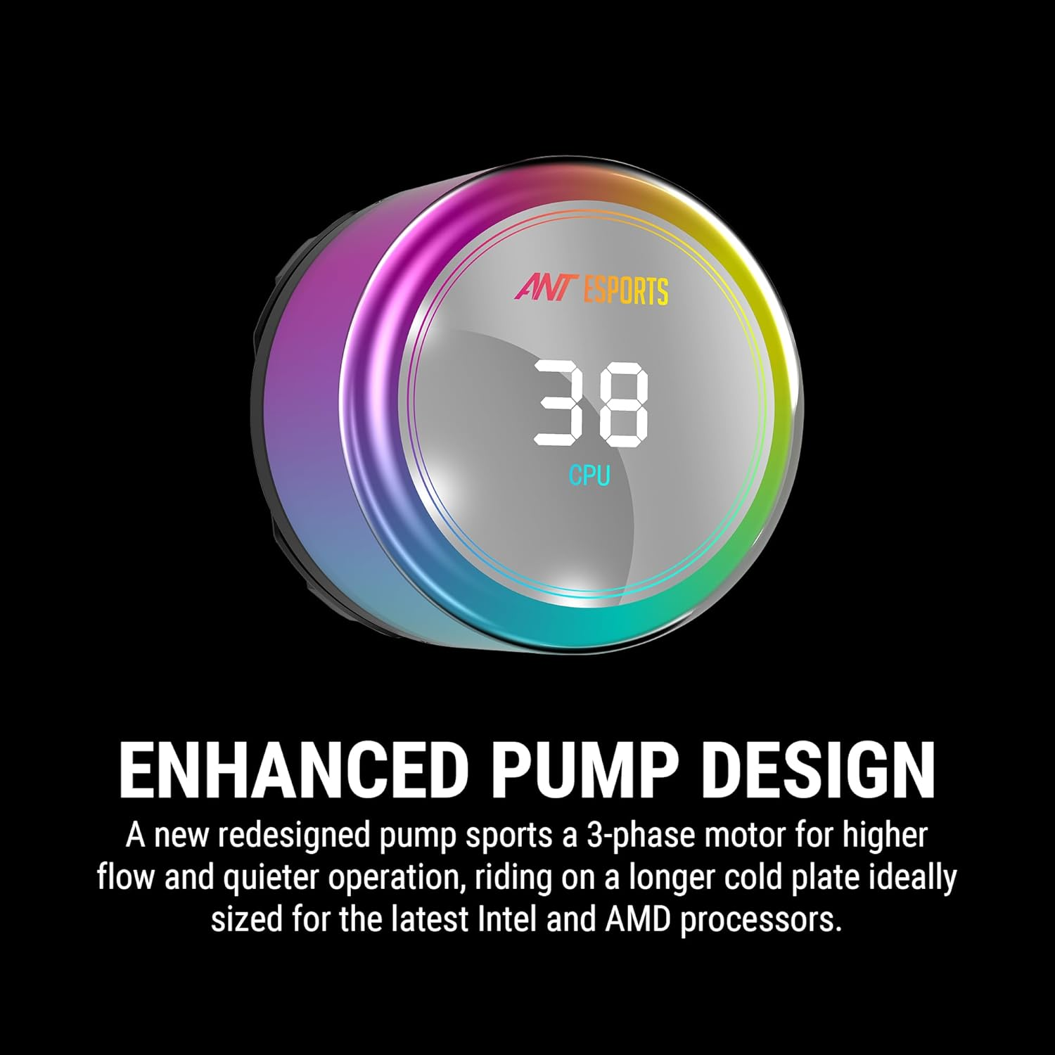 Ant Esports ICE Chroma 360 ARGB 360mm ARGB Liquid Cooler/AIO with CPU Temperature Display - Black | Support Intel & AMD CPU Socket AM5, AM4, AM3, LGA1700, 1200, 2066, 1151 | Evaporation-Proof Tubing
