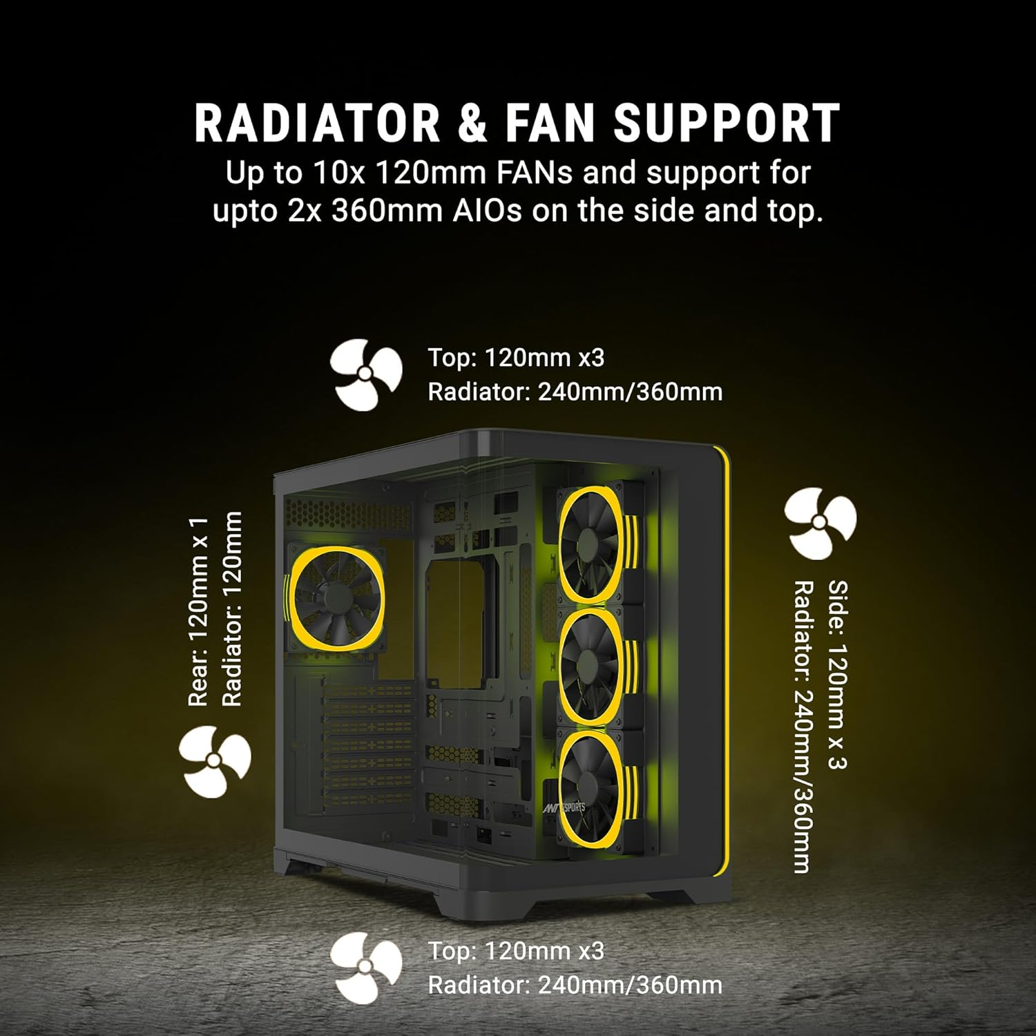 Ant Esports Crystal ARC Mid-Tower Computer Case/Gaming Cabinet - Black |Front Curved Glass|Support ATX, Micro-ATX, Mini-ITX | Pre-Installed 4 ARGB-PWM Fans