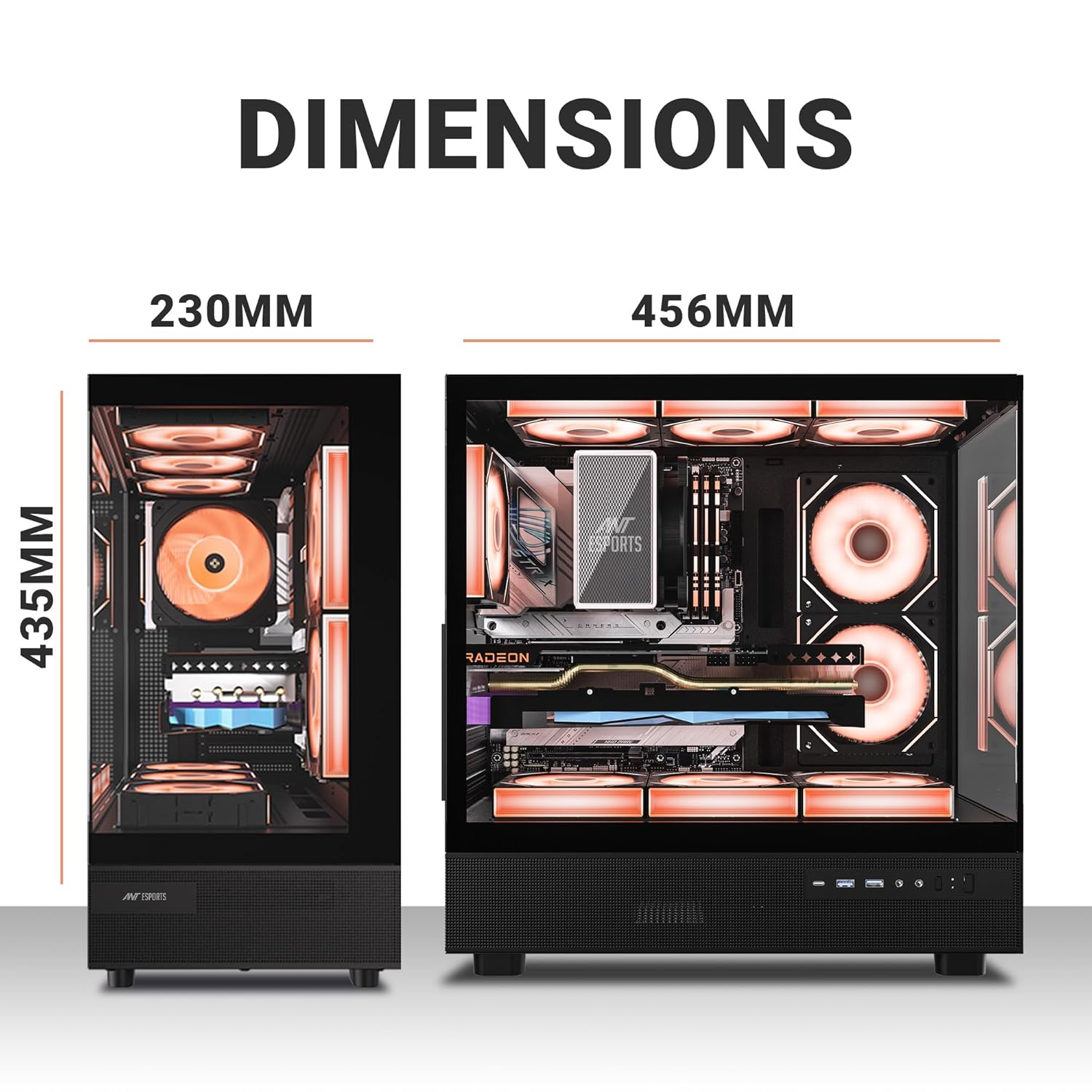 Ant Esports Crystal X6 ATX Mid-Tower Computer Case/Gaming Cabinet with Type-C - Black | Support ATX, Micro-ATX, Mini-ITX | Pre-Installed 6 ARGB Infinity Mirror Fans | Dual Front Panel (Mesh/Glass)
