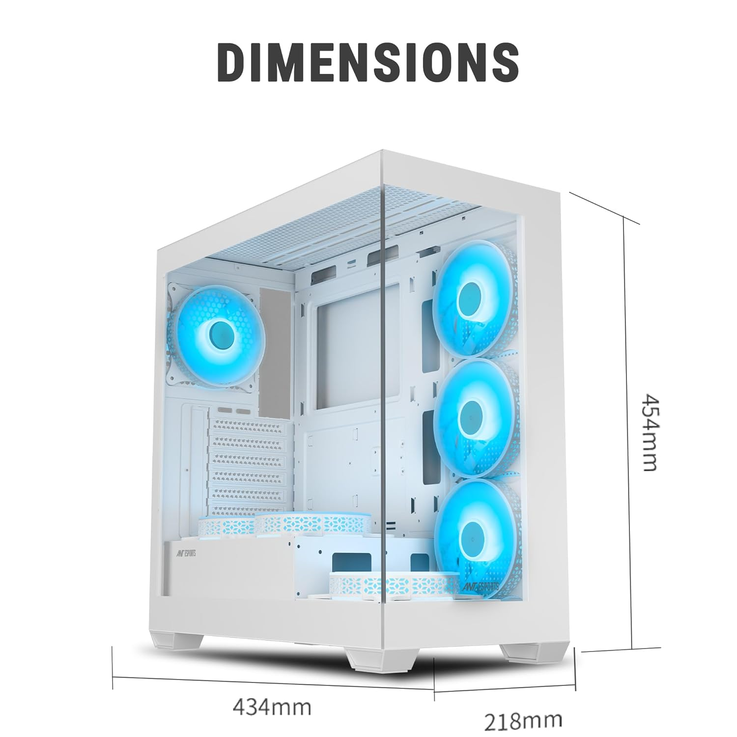 Ant Esports Crystal X7 ATX Computer Case/Gaming Cabinet with Type-C - White | Support ATX, Micro-ATX, Mini-ITX | Pre-Installed 3 M/B Plate Fans, 2 PSU Shroud Fans, 1 Bottom & 1 Rear Fan