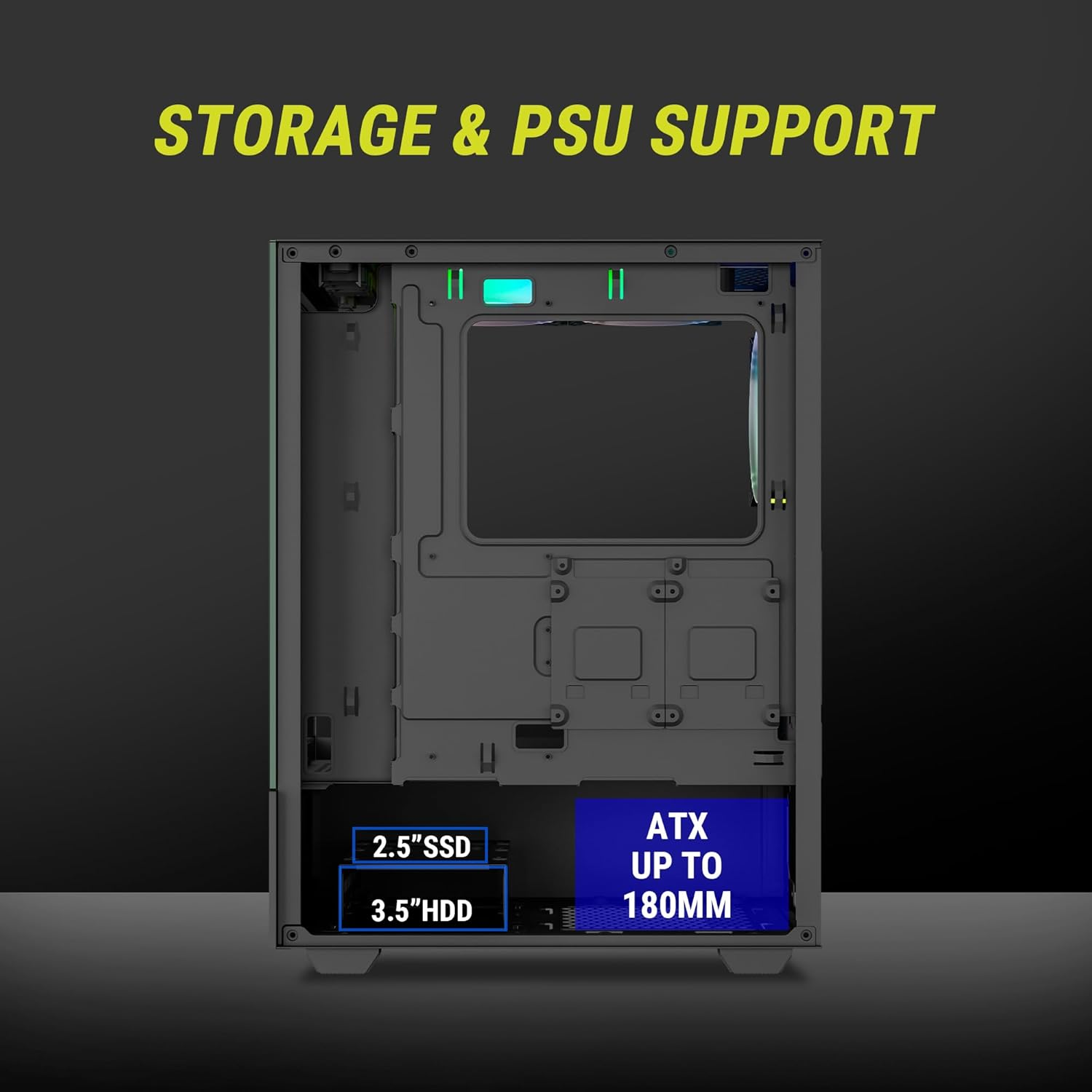 Ant Value Tempered_Glass CV100 Mid-Tower Computer Case/Gaming Cabinet – Black | Support ATX, M-ATX, ITX | Pre-Installed 2 Top & 1 Rear Rainbow Fans