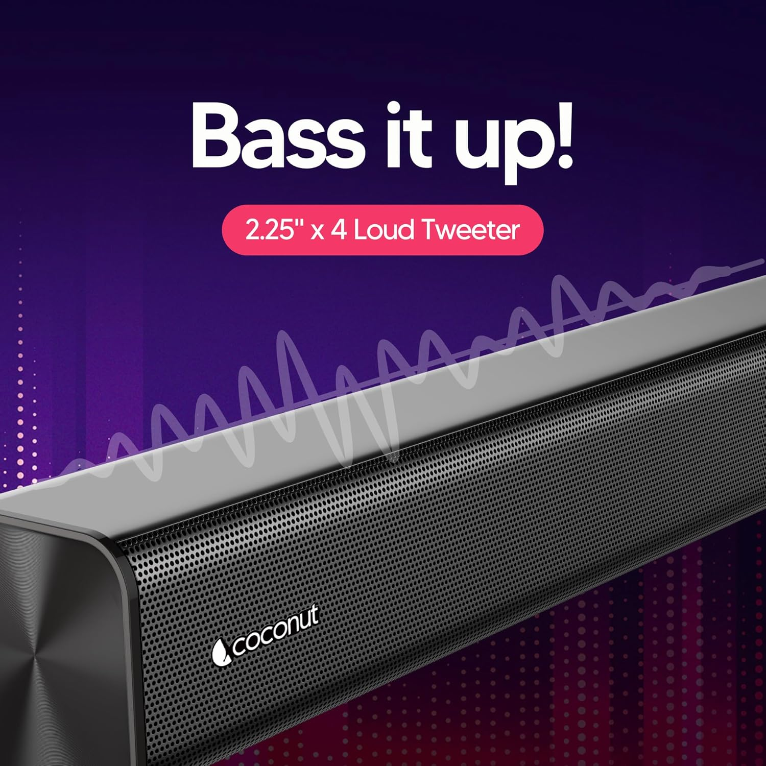 coconut Carol 80W Wireless Sound Bar:Immersive Audio Experience, BT Wireless Connectivity, HD/ARC Support, Optical Input,AUX,Wall-Mountable Design, Robust Performance, Convenient Remote Control