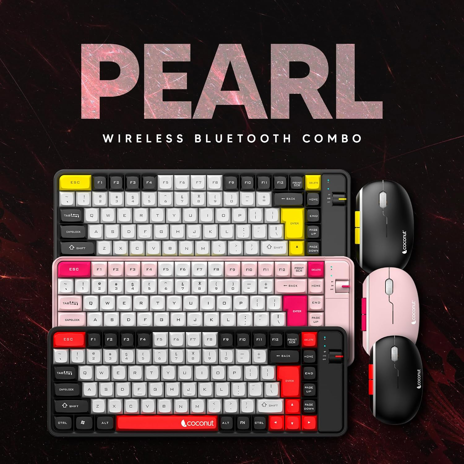 - COCONUT PEARL Multi Device Wireless+BT Keyboard&Mouse Combo