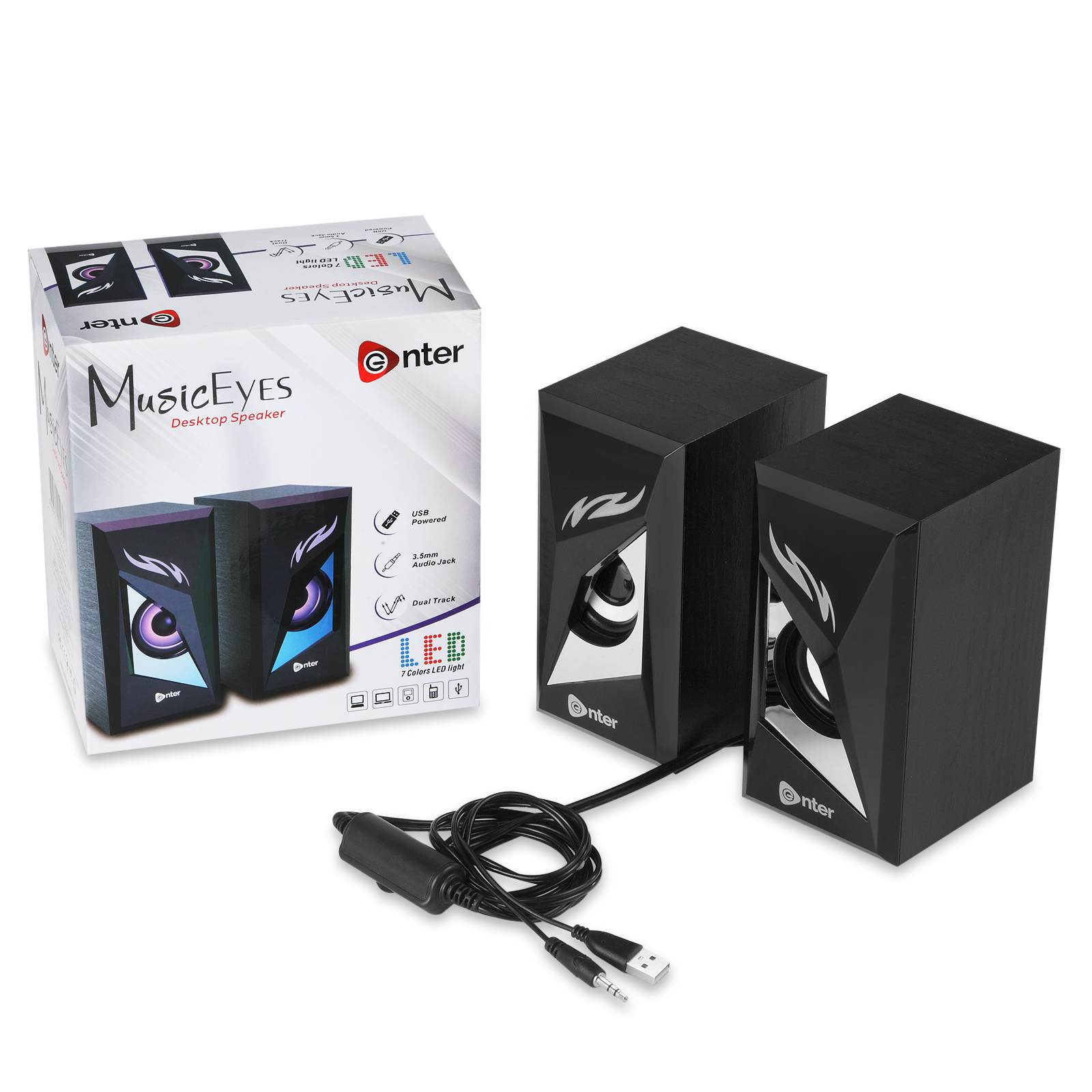 Enter Music Eye Wood and ABS USB Mini Speaker (Set of 2 Pcs) 3 W Laptop/Desktop Speaker (Black, 2.0 Channel)