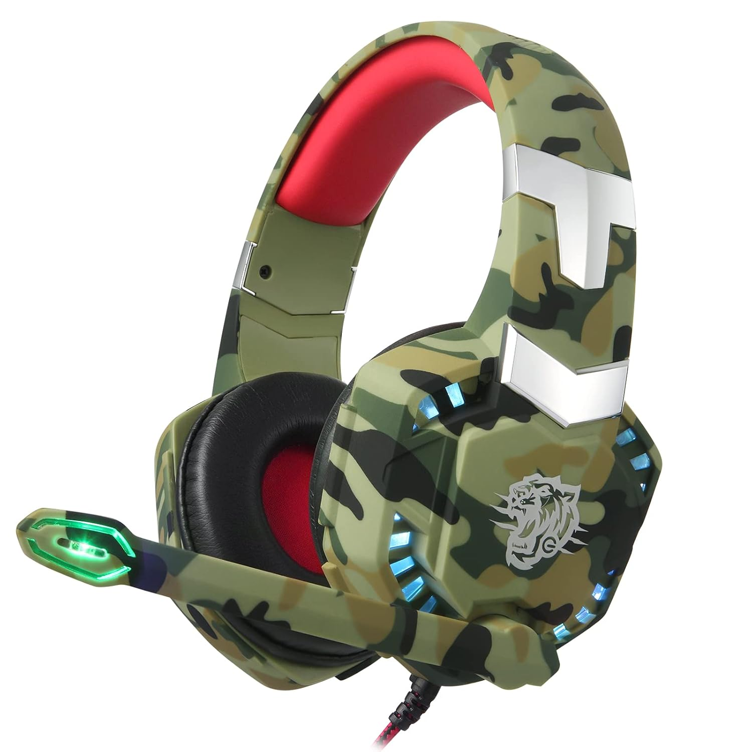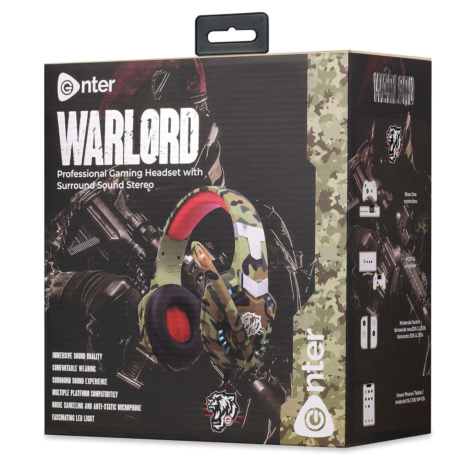 Enter Warlord Wired Gaming Headphone with 40mm Driver, Adjustable Headband with RGB Lights and Passive Noise Cancellation with Free Y Splitter, Camoflauge