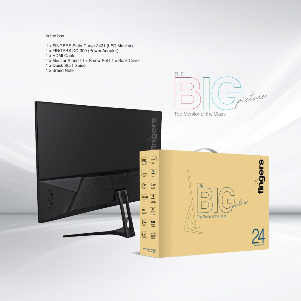 FINGERS Satin-Curve-2421 Curved LED Monitor (23.81, 60 cm) with 1920 x x1080 FHD Resolution, Ultra-Slim Design, VGA + HDMI + VGA Output, Wall mountable, 100 Hz Refresh Rate, 250 nits Brightness