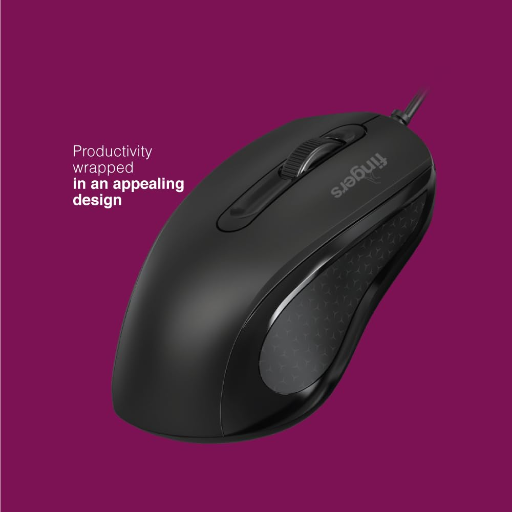 FINGERS MegaHit USB Wired PC Mouse (Advanced Optical Technology, 12200 DPI, Ambidextrous, Plug-n-Play for Windows®, macOS, Linux & Chrome OS)