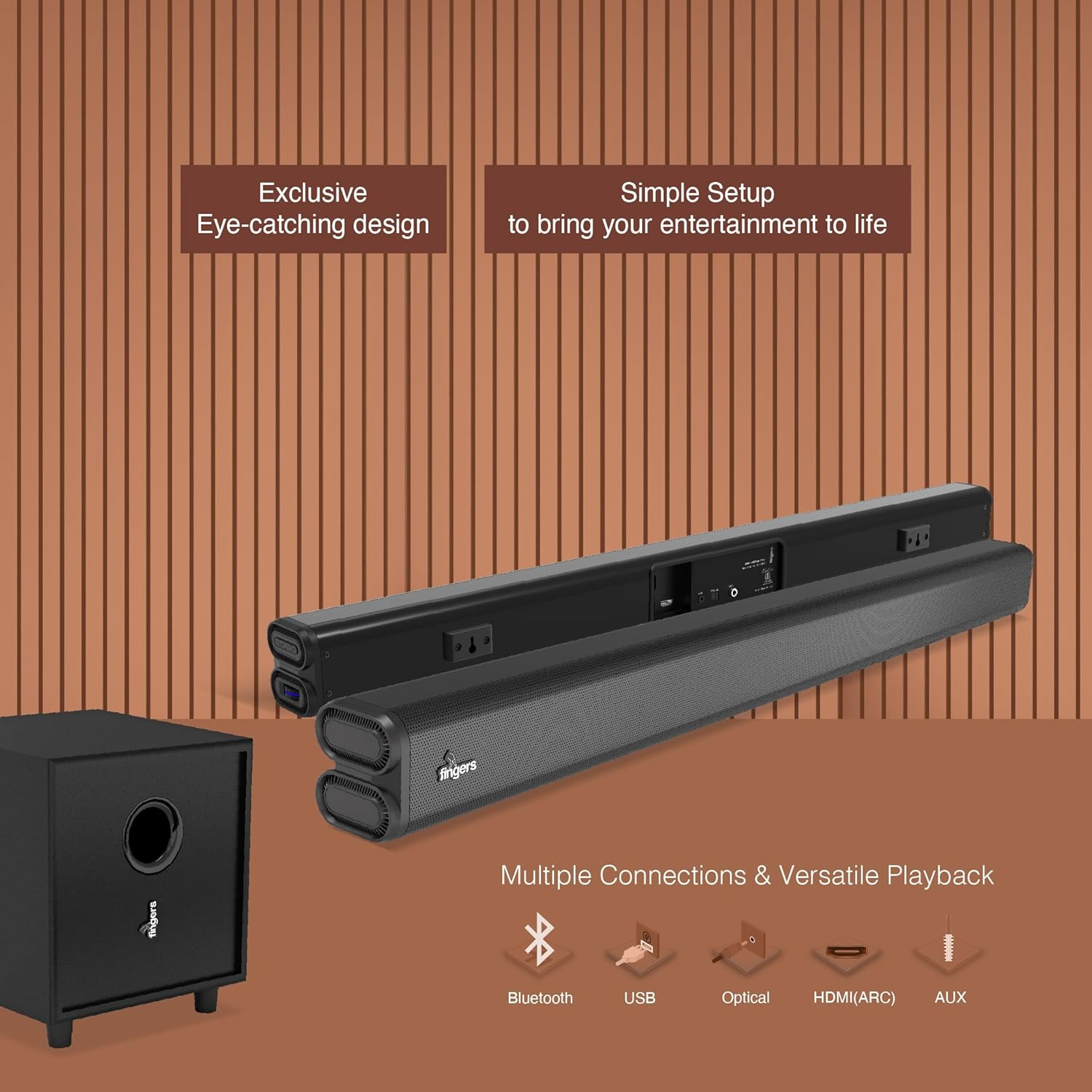 FINGERS Octane-S80 Multimedia SoundBar with Subwoofer (Powerful 80 Watts, Bluetooth, USB, AUX, Optical, HDMI (ARC), EQ Modes for Movies, Music & News, Wall Mountable & Remote Control
