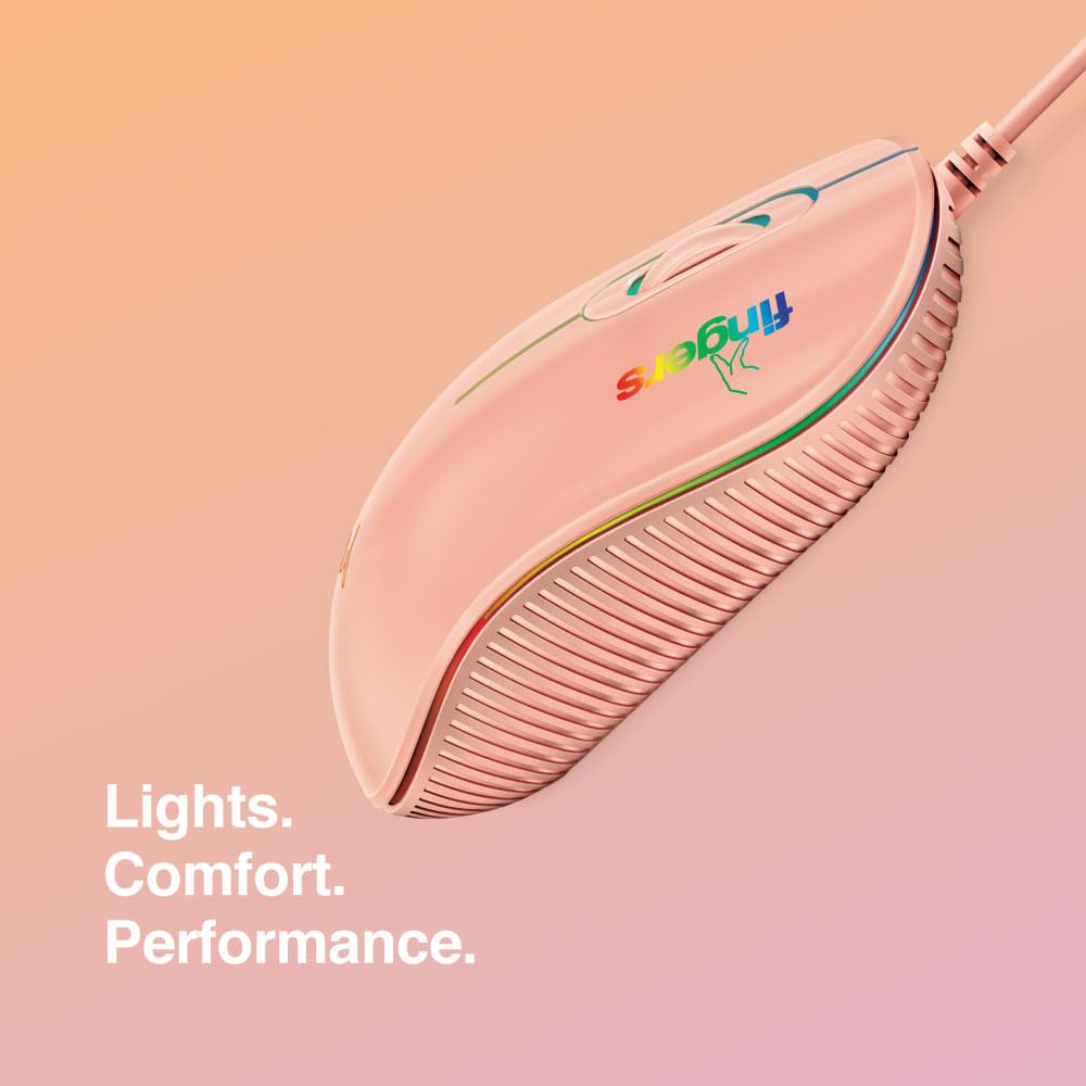 FINGERS RGB-Debonair USB Wired Mouse with Advance Optical Technology and Breathing RGB LED Lights (3 Buttons with Scroll Wheel |Ambidextrous | Windows®, macOS, Linux Compatible) Blush Pink