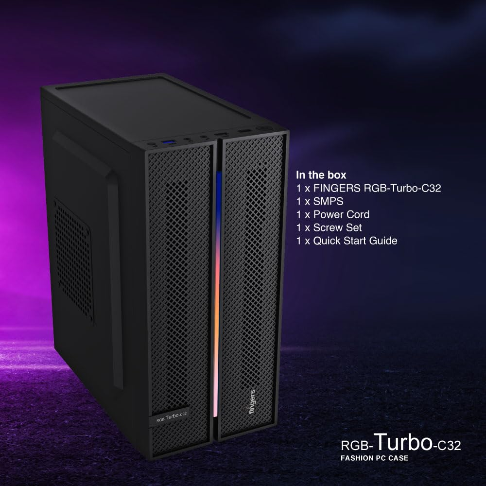 FINGERS RGB-Turbo-C32 Super Compact Micro ATX PC Cabinet with ARGB LEDs (1 x USB 3.0, 1 x USB 2.0, HD Audio, Mic in Port, SMPS Bundled)