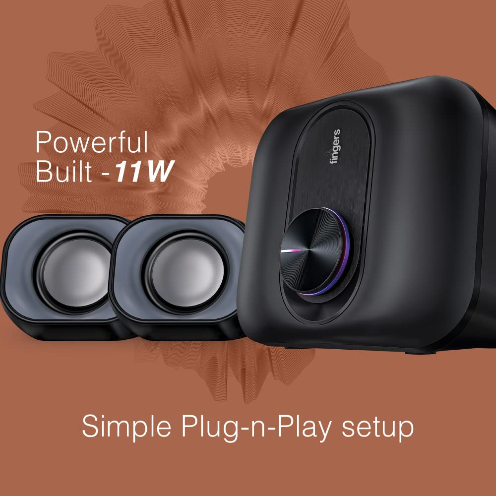 FINGERS StereoBeats 2.1 Channel Multimedia Wired Speaker (USB Powered with 3.5 mm Stereo Input | Powerful 11 Watts | for Computer PCs & Laptops) - Rich Black
