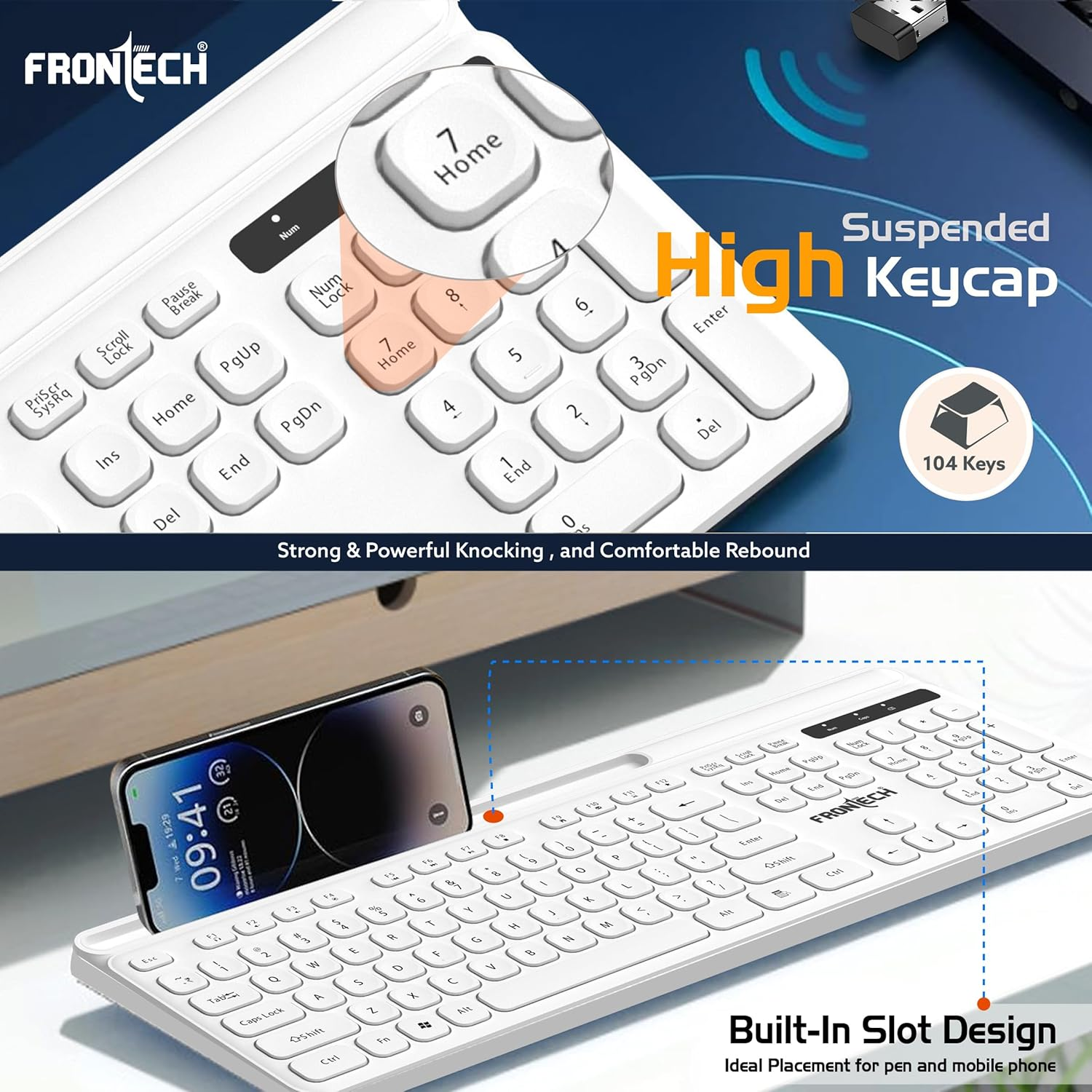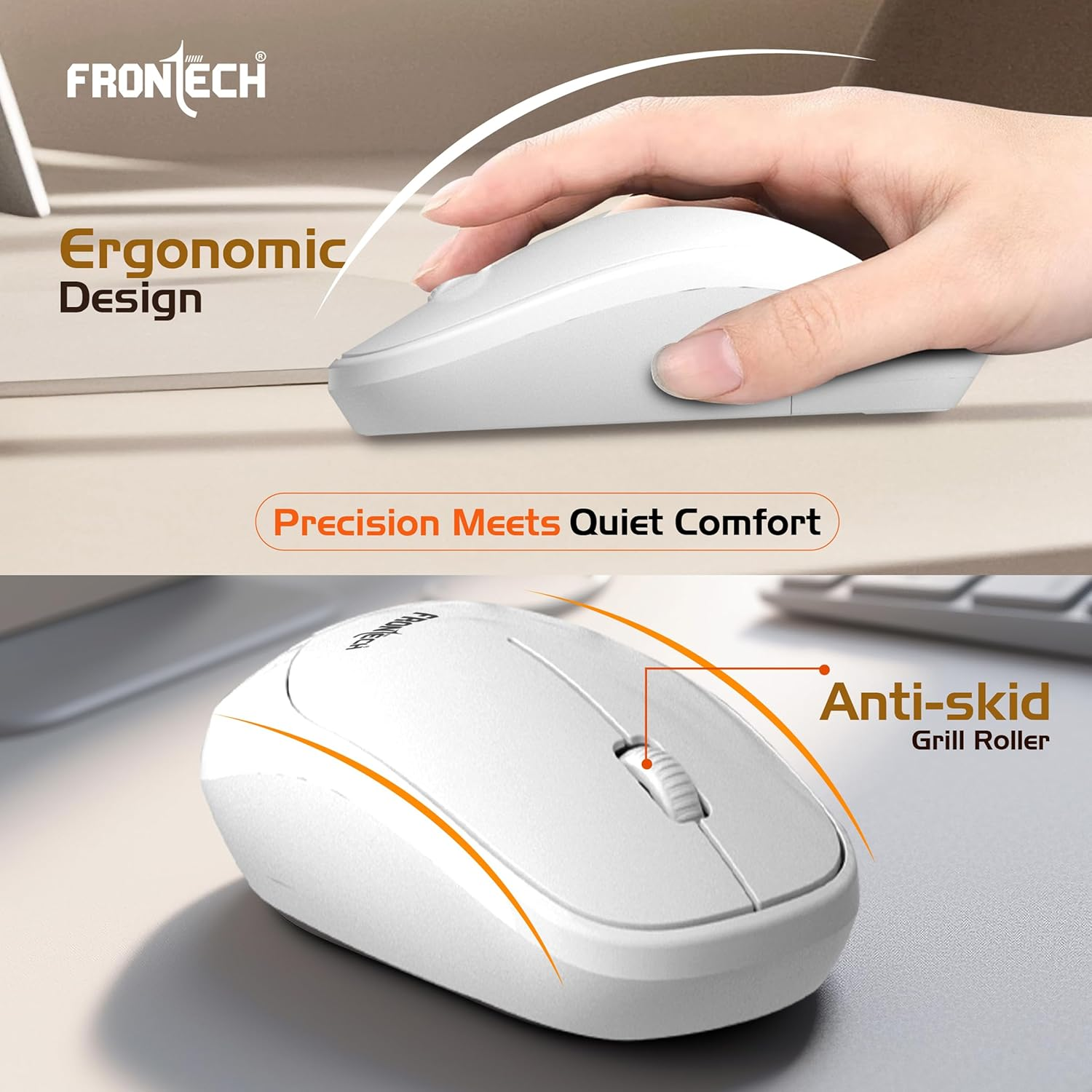 Frontech Wireless Keyboard & Mouse Combo Set | 2.4GHz USB Connectivity | 104 Keys | 3 Buttons | 1200 DPI Mouse | Compatible with PC/Laptop/Mac (KB-0030, White)