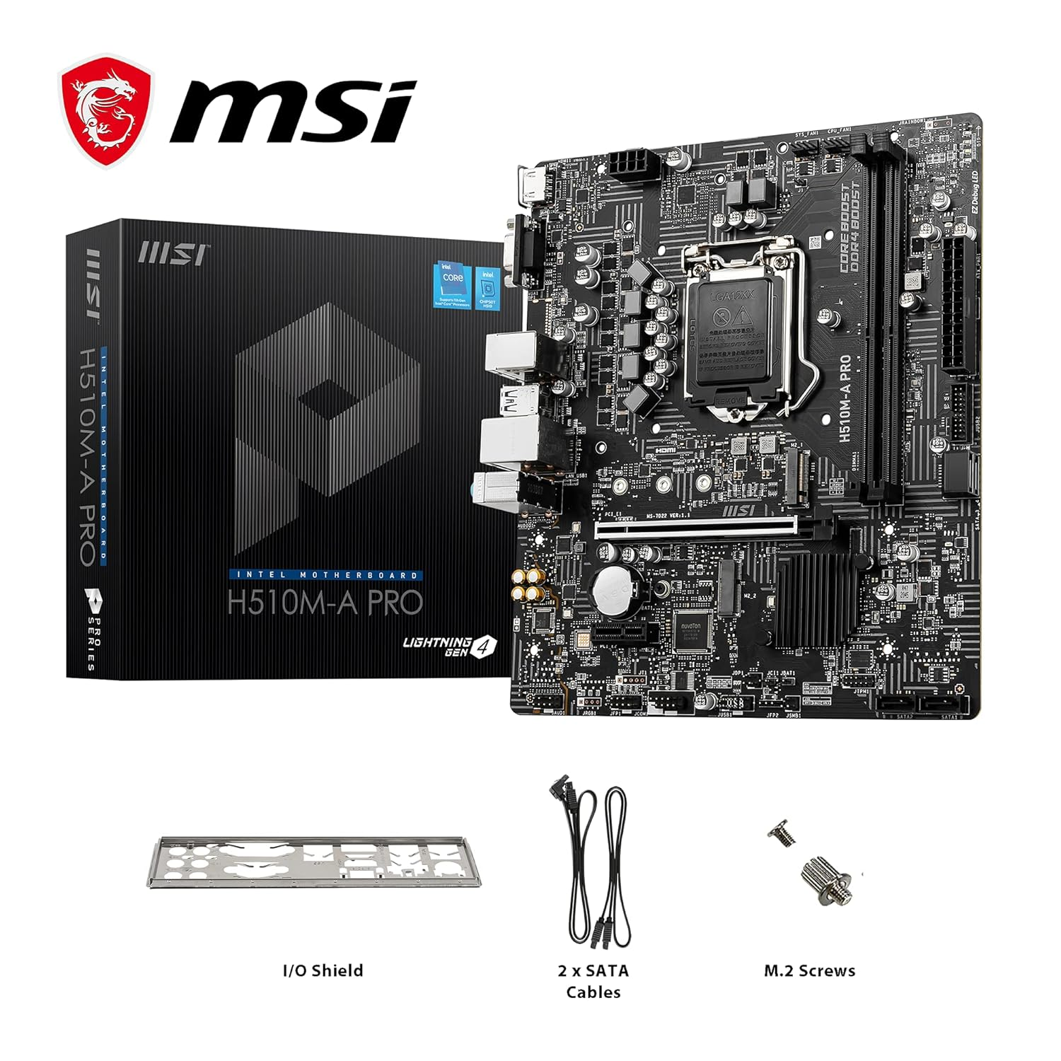 MSI H510M-A PRO Motherboard, Micro-ATX - Supports 11th Gen Intel Core Processors, LGA 1200-2 X DIMMs (3200Mhz), 1 X Pcie 4.0 X16, 1 X M.2 Gen3, USB 3.2 Gen1, 1G LAN, HDMI 2.0B