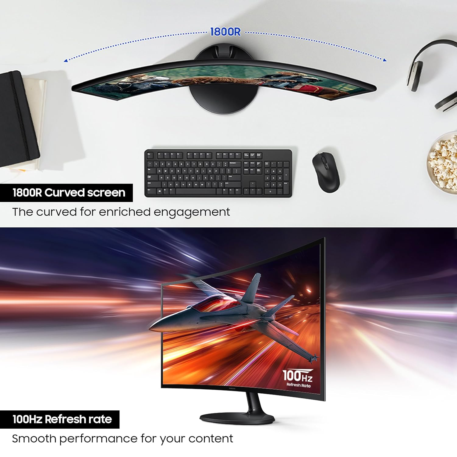 Samsung 24" (59.8 cm) 1800R Curved Monitor|FHD 1920 x 1080|100 Hz|4ms|Ports-HDMI,VGA,Headphone|Game Mode|Eye Saver Mode||Wall Mountable|LS24D368GAWXXL|Black