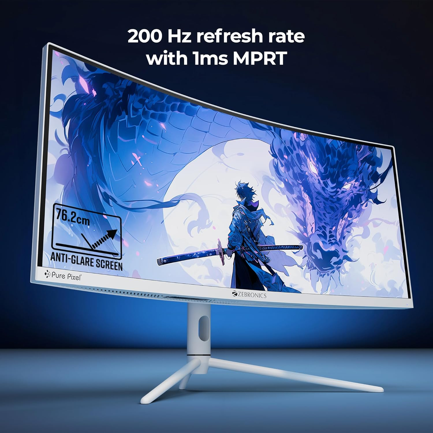 ZEBRONICS N30A 30" (76.2 cm) 1500R Curved Ultrawide Gaming Monitor, WFHD 2560x1080, 300Nits, 200Hz, 1ms MPRT, HDR10, 99% sRGB | 95% DCI-P3, Adaptive Sync, 2 x DP | 2 x HDMI | 1 x 3.5mm