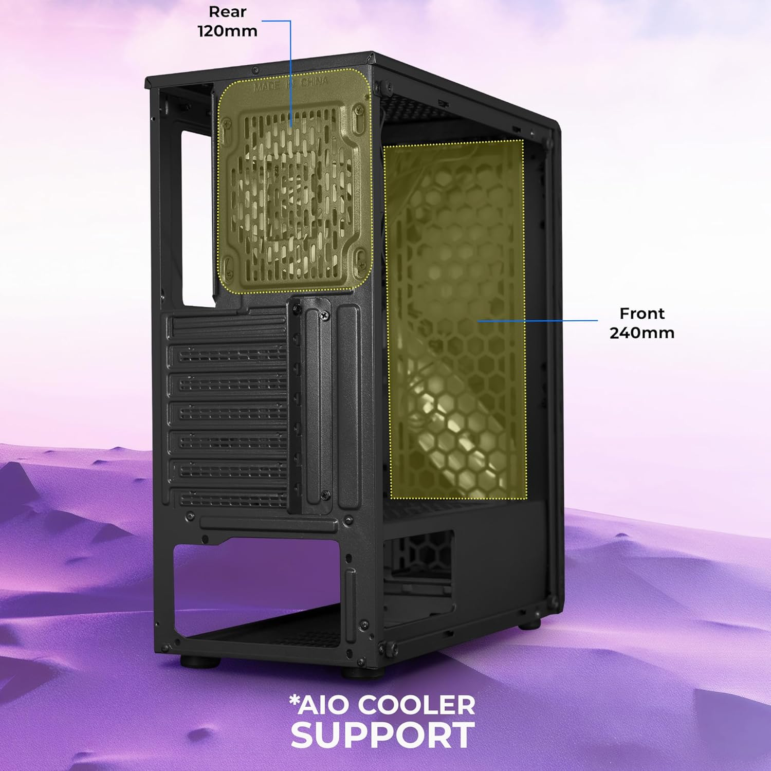 ZEBRONICS TACHI Mid-Tower Premium Gaming Cabinet, ATX/M-ATX/M-ITX, 1 x 120 mm RGB Inner Glow Rear Fan, LED Strip with Control Switch, Tempered Glass Side Panel, USB 3.0, USB 2.0