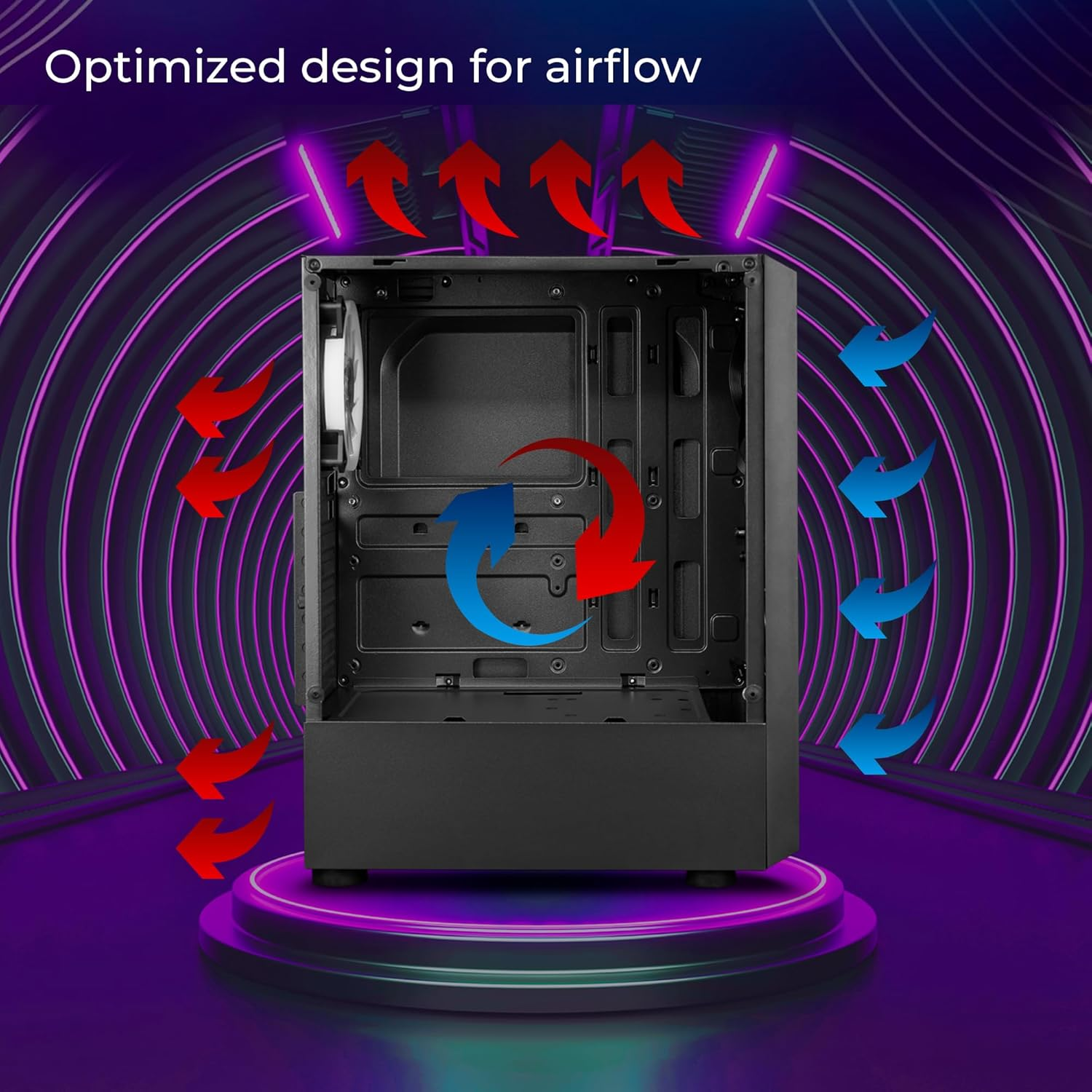 ZEBRONICS Troy Mid-Tower Premium Gaming Cabinet ATX/MicroATX/MINI ITX,1x 120mm Rear Fan, Halo Glow Ring RGB Fans,RGB LED Modes,Tempered Glass Side Panel, USB 3.0,Magnetic Dust Filter